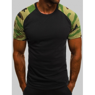 Lovely Casual O Neck Camo Print Patchwork Black Men T-shirt