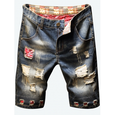 Lovely Casual Broken Holes Patchwork Blue Men Denim Shorts