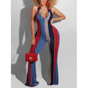 Lovely Casual Striped Patchwork Flared Red One-piece Jumpsuit