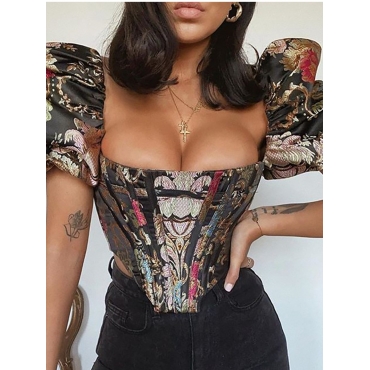 Lovely Street Floral Print Ruffle Design Multicolor Blouse