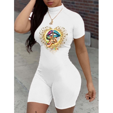 Lovely Chic Turtleneck Lip Print White Yoga One-piece Romper