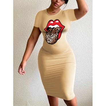 Lovely Casual Lip Leopard Print Apricot Knee Length Dress