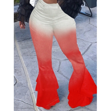 Lovely Chic Gradient Flared Layered Cascading Red Plus Size Pants