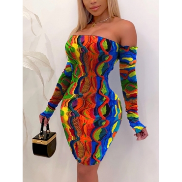 Lovely Sweet Off The Shoulder Animal Print Patchwork Multicolor Knee Length Dress