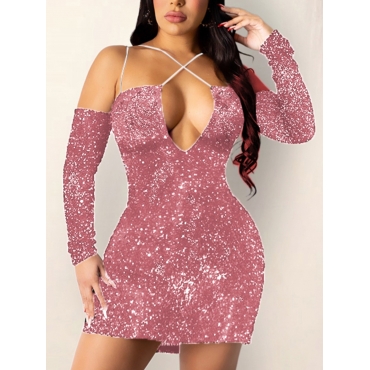Lovely Sexy Off The Shoulder Side Split Pink Mini Dress