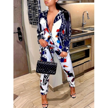 Lovely Work Graffiti Print Patchwork White Two Piece Pants Set