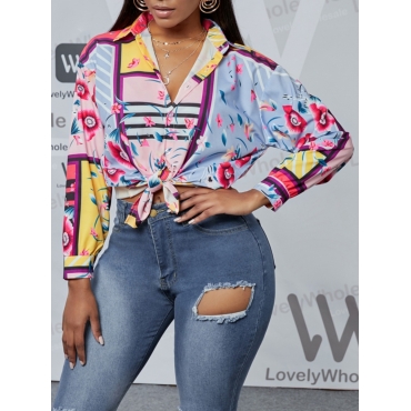 Lovely Street Turndown Collar Floral Print Multicolor Blouse