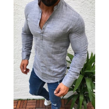 Lovely Casual Mandarin Collar Button Design Grey Men Shirt