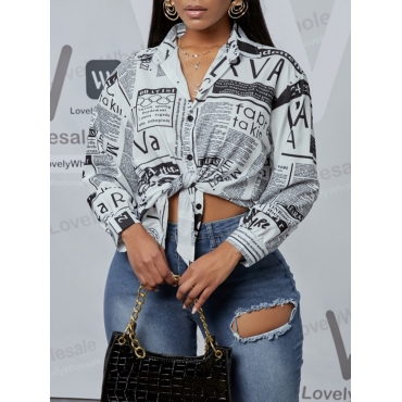 Lovely Street Turndown Collar Letter Print White Blouse