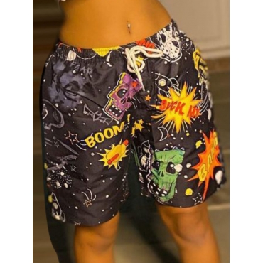 Lovely Casual Mid Waist Gradient Print Black Shorts