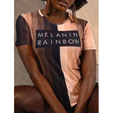 Lovely Casual O Neck Letter Print Patchwork Black T-shirt
