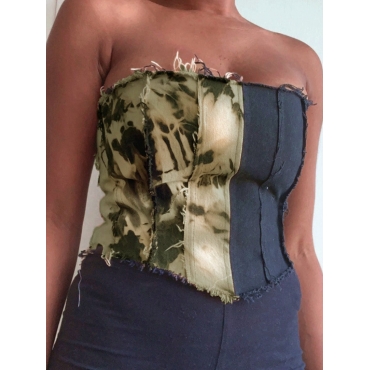 Lovely Street Off The Shoulder Bandage Hollow-out Design Brown Camisole