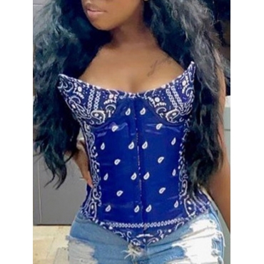 Lovely Street Off The Shoulder Star Print Blue Camisole