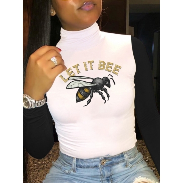 Lovely Casual Turtleneck Letter Animal Print Patchwork Carbon Black T-shirt