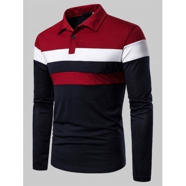 Lovely Work Turndown Collar Patchwork Navy Blue Men Polo-shirt