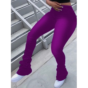 Lovely Trendy High-waisted Fold Design Purple Pants