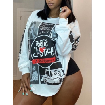 Lovely Casual O Neck Print White Plus Size T-shirt