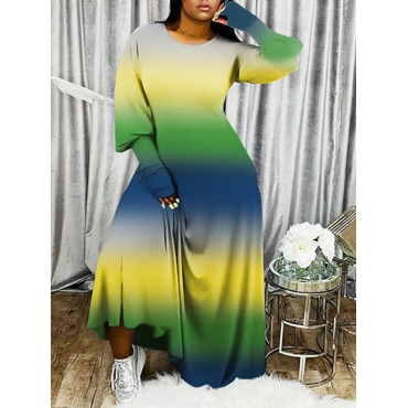 Lovely Casual O Neck Gradient Green Maxi Dress