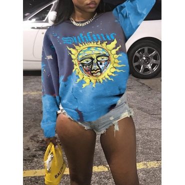 Lovely Street O Neck Letter Print Navy Blue Hoodie