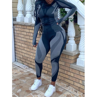Lovely Sportswear Turndown Collar Color-lump Patchwork Grey Two-piece Pants Set