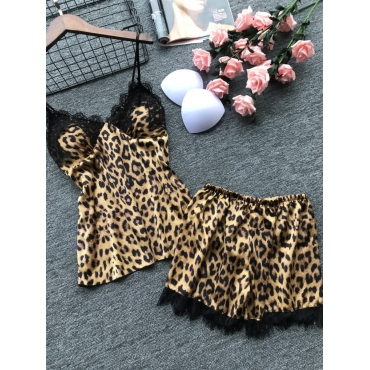 Lovely Sexy Leopard Print Lace Patchwork Sleepwear