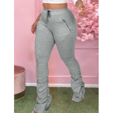 Lovely Casual Mid Waist Drawstring Design Grey Pants