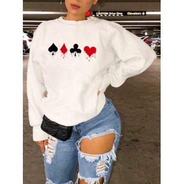 Lovely Casual O Neck Print White Hoodie