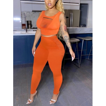 Lovely Casual U Neck Tank Sleeveless Broken Holes Croci Yoga Two Piece Pants Set