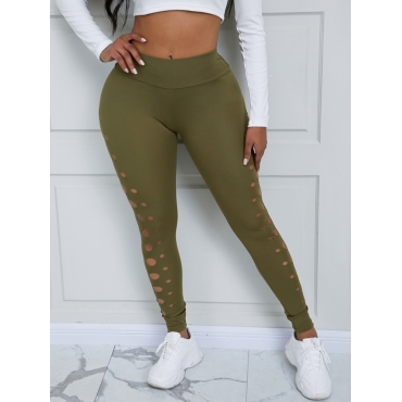 Lovely Sportswear Mid Waist Ripped Green Pants
