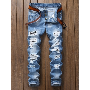 Lovely Casual Mid Waist Broken Holes Blue Men Jeans