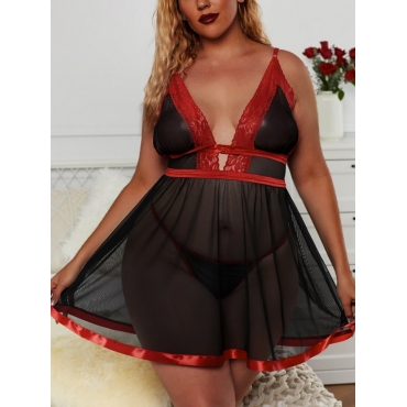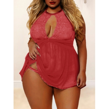 Lovely Sexy Hollow-out Mesh Patchwork Red Plus Size Babydoll