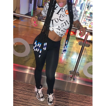 Lovely Casual O Neck Letter Print White Two Piece Pants Set(No-positioning Printing)