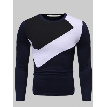 Lovely Casual O Neck Patchwork Navy Blue T-shirt