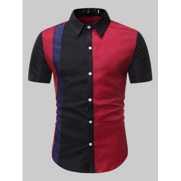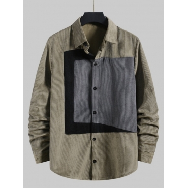 Lovely Casual Color-lump Patchwork Green Men Shirt