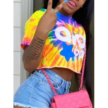Lovely Casual Raw Edge Tie-dye Print Multicolor T-shirt