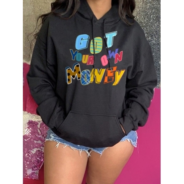 Lovely Casual Dropped Shoulder Letter Print Black Hoodie