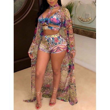 Lovely Bohemian Spaghetti Strap Print Hollow-out Multicolor Tankini