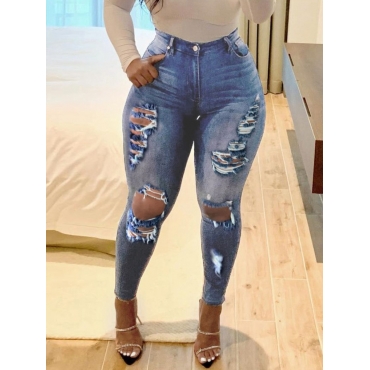 Lovely Street High-waisted Broken Holes Blue Jeans
