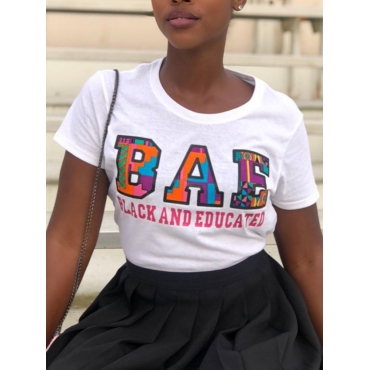 Lovely Casual O Neck Letter Print White T-shirt