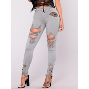 Lovely Party High-waisted Broken Holes Grey Jeans