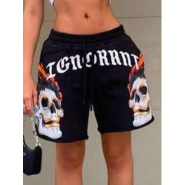 Lovely Casual Mid Waist Letter Print Black Short