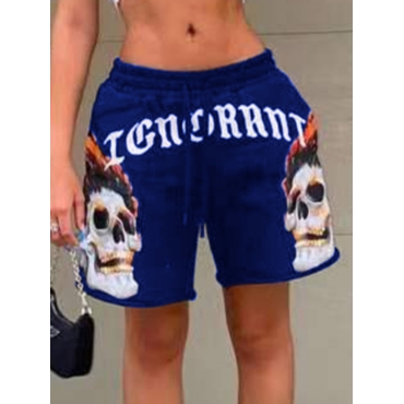 Lovely Casual Mid Waist Letter Print Blue Short