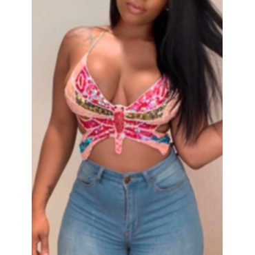 Lovely Sexy Sequined Butterfly Rose Red Camisole