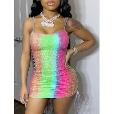 lovely Street Tie-dye Drawstring Green Mini Dress