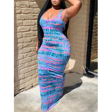 Lovely Bohemian Tie-dye Bandage Design Blue Maxi Dress