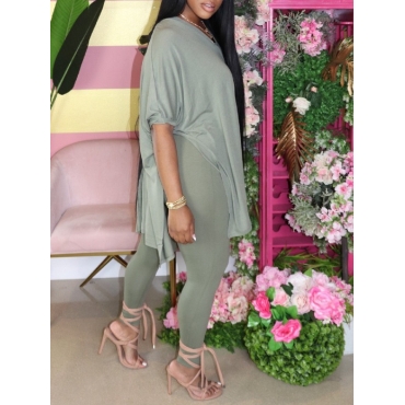 Lovely Casual V Neck Side Slit Light Green Two Piece Pants Set