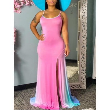 Lovely Trendy Spaghetti Strap Tie-dye Side High Slit Pink Maxi Dress