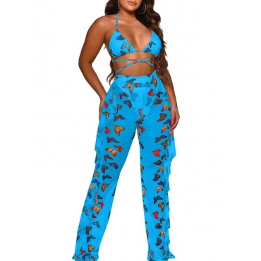 Lovely Butterfly Print Royalblue Cover-up(Two-piece)