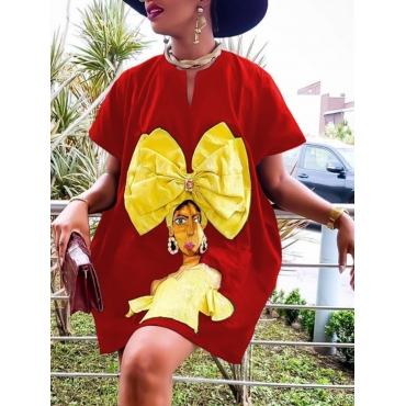 Lovely Casual Print Loose Red Mini Dress