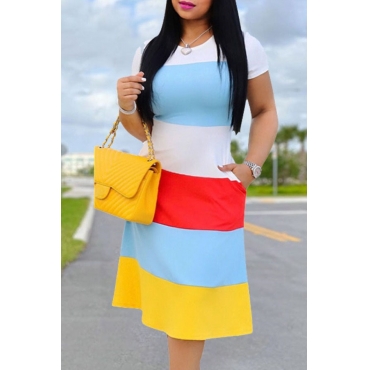 Lovely Casual O Neck Striped Multicolor Knee Length Dress